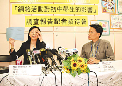 防止虐待兒童會總幹事雷張慎佳(左)促家長及政府注意防止學童上網受侵犯。 (黃錦佳 攝)