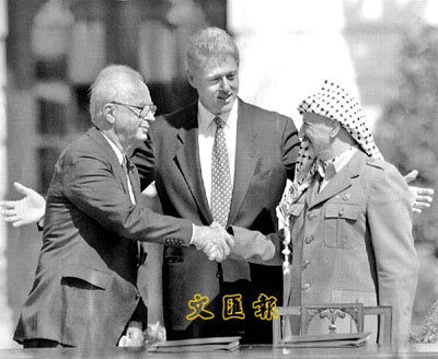 前以色列總理拉賓(左)為推動中東和平進程而努力,卻被宗教極端分子斥為「出賣猶太人領土的叛徒」而遭暗殺。 (資料圖片)