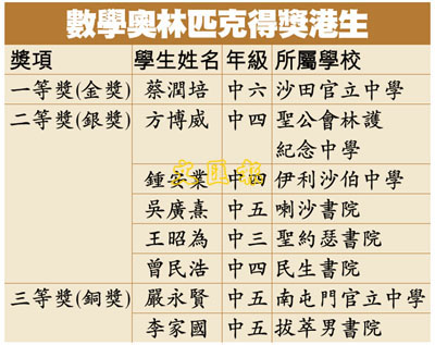 數學奧林匹克得獎港生 (圖)