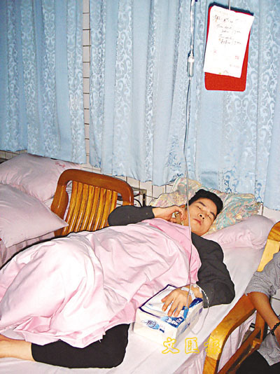 中毒的黃先生在深圳市第二人民醫院接受治療。 (本報深圳傳真)