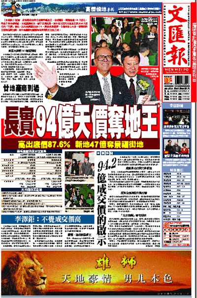 [2004-10-13] 長實94億天價奪地王 放大圖片