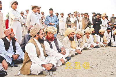 巴基斯坦部落長老周二在與阿富汗接壤的南瓦濟里斯坦舉行會議,討論釋放被劫持中國工程師的問題。(美聯社)