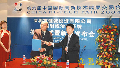 資料顯示,世界上目前僅有中國和瑞典可生產伽瑪刀。作為中國自行研製開發生產、擁有自主知識產權的「伽瑪射線治療系統」,本次通過高交會首次走向國外。