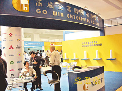 一港企在塑洽會顯著位置搶佔展台。(羅志偉 攝)