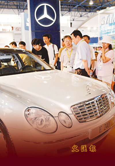 2003年中國已成為歐盟第二大貿易夥伴。圖為在北京的車展上,觀眾正觀賞德國奔馳豪華轎車。 (資料圖片)