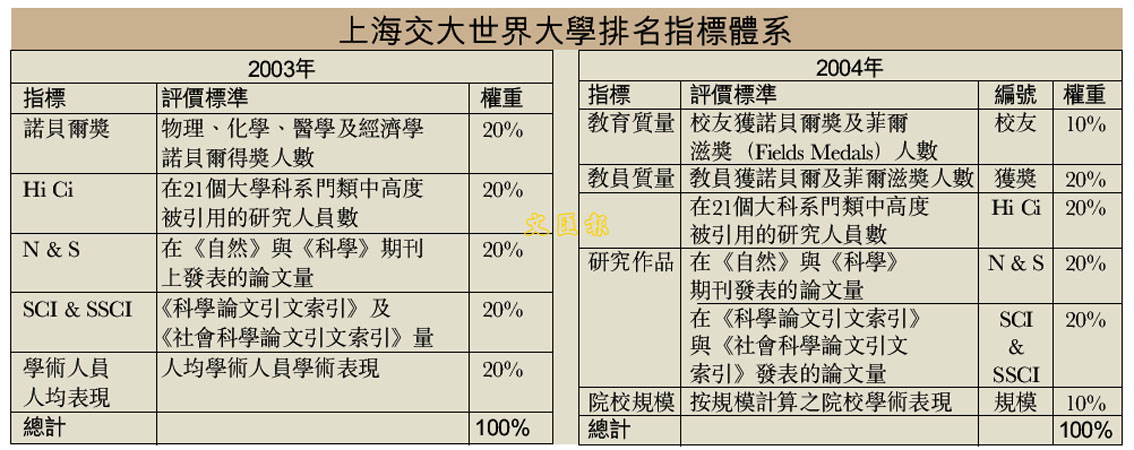 ¤W®ü¥æ¤j¥@¬É¤j¾Ç±Æ¦W«ü¼ÐÅé¨t (¹Ï)