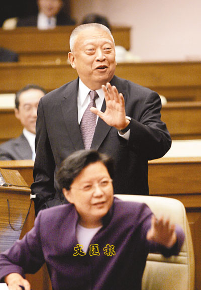 【本報訊】一向喜歡搞事的「長毛」梁國雄,昨在特首答問大會上再「玩新招」,站在座位上大呼小叫,口出粗言阻礙其他59位議員發問,要求主席即時處理其「投訴」。主席范徐麗泰多番勸阻無效,被迫下令休會,使答問大會延誤了10多分鐘。這是回歸以來特首答問大會首次受到議員阻撓而被迫暫停會議。