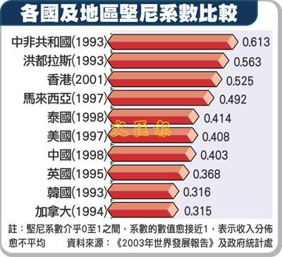 [2004-10-17] 各國及地區堅尼系數比較