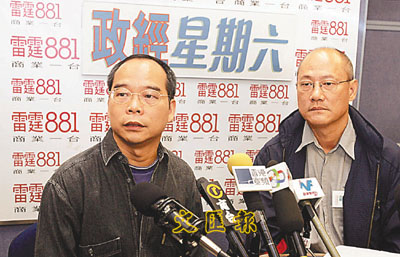 劉江華、陳偉業在電台節目中討論九鐵尖東站的票價問題。 (趙焜崗 攝)