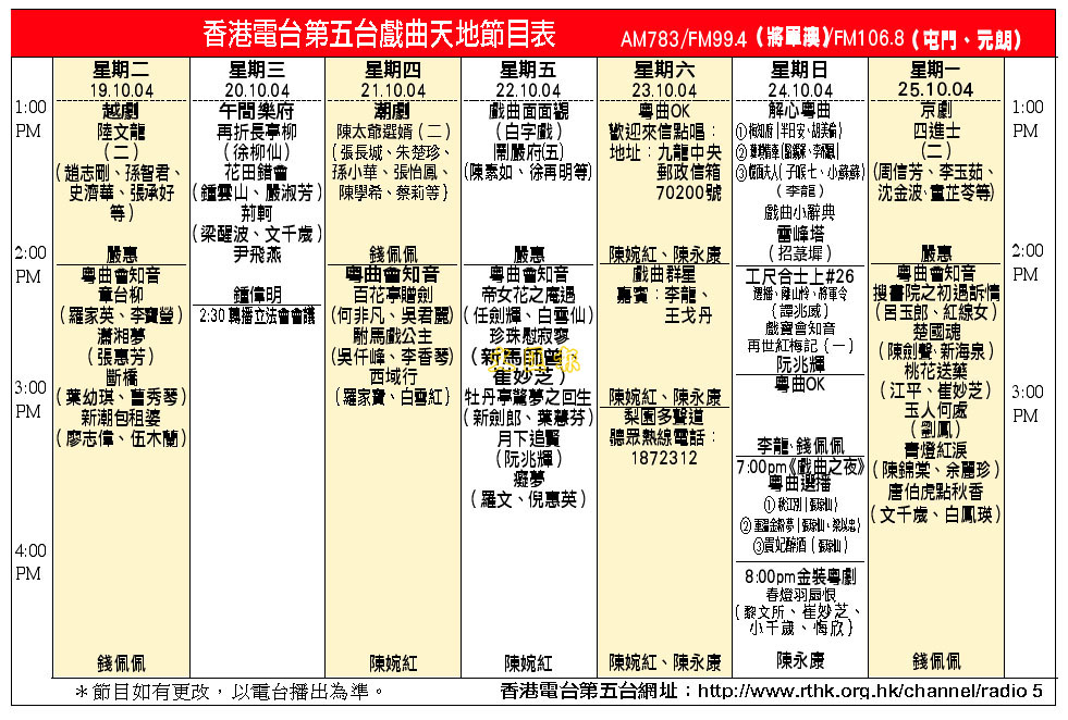 [2004-10-19] 香港電台第五台戲曲天地節目表