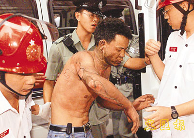 案發當日在入境處被燒傷的男子。(資料圖片)