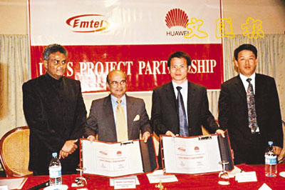 華為將為EMTEL提供WCDMA解決方案。圖為簽約儀式。