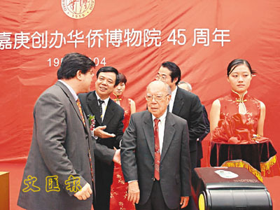 陳嘉庚的七公子陳元濟(前右)出席紀念其父誕辰130周年系列活動。 (本報記者吳健 攝)