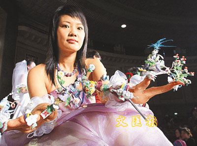 國際美甲冠軍大賽在北京展覽館劇場舉行。美甲大賽冠軍得主的纖纖十指上造型繁複令人眼花繚亂。 (中新社)