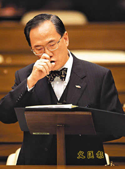 曾蔭權稱,維港巨星匯事件給港府上了寶貴的一課。 (張立新 攝)