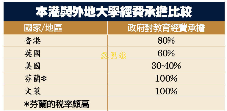 本港與外地大學經費承擔比較 (圖)
