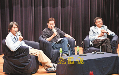 李歐梵(中)與周星馳(左)上周在港大交流電影文化心得。