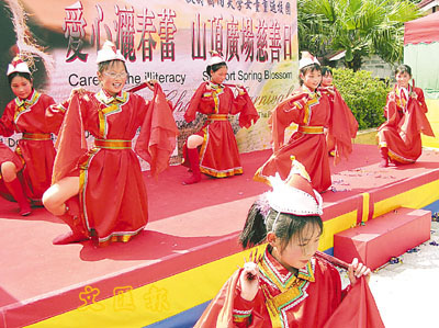 【本報訊】(實習記者 朱樂汶)「每月只靠父母種菜賺取500元維持一家四口生活,根本負擔不起每學期400元的學費,所以被迫失學多年,其實400元對我們來說實在太奢侈,直至春蕾計劃的出現……」10名來自內蒙古的女童昨日在港島太平山山頂廣場,訴說因家境貧困被迫失學的感受,並即場表演具有內蒙古民族風情的舞蹈籌款。