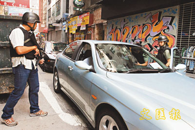 警員荷槍實彈在現場搜索疑人,氣氛緊張。