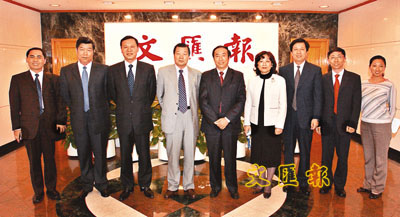 中國建築工程總公司副總經理郭濤(右五)、中國海外行政總裁孔慶平(左三)及中國建築工程總公司人力資源部總經理李劍波一行昨日到訪本報,獲本報社長張國良(左四)及副社長劉永碧(右四)等熱情接待。