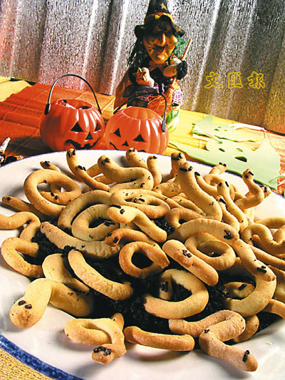 一條條的屍蟲以朱古力點上了眼睛,在餐桌上探頭八八卦卦的,我們要盡快將它們吞下,以防美味的食物被吃掉。