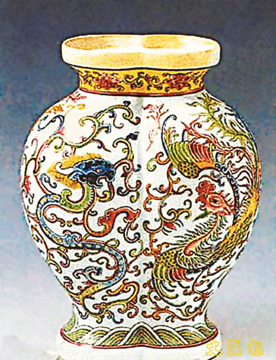 琺琅彩龍鳳紋雙聯瓶身。