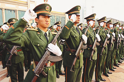 28日上午,廣西南寧市警方舉行聲勢浩大的誓師大會,確保將在下月初舉行的中國—東盟博覽會安全舉行。 (中新社)