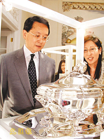 李智康正觀賞的法國 Puiforcat 銀器產品,價值456,860港元。