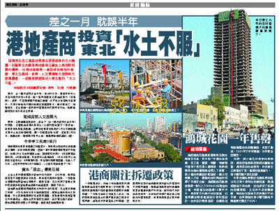 振興東北老工業基地是東北發展經濟的巨大機遇。投資東北的香港房地產商在資金上具有較明顯的優勢,但房地產業是一種區域性極強的產業,東北在氣候、政策、人文環境等方面與南方差異顯著,一些香港開發商初入東北感到「水土不服」。