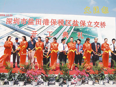 【本報珠三角新聞中心記者岳仿嶙、孫韻深圳29日電】今日,由深圳市鹽田港集團股份有限公司承建的連接深圳市鹽田港保稅區南北兩個片區的鹽保立交橋正式開工建設,鹽保立交橋是市政府為鹽田港爭取「區港聯動」政策必須具備的最為重要的基礎設施之一。