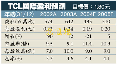 [2004-10-30] H股透視:TCL盈利下調風險增 放大圖片