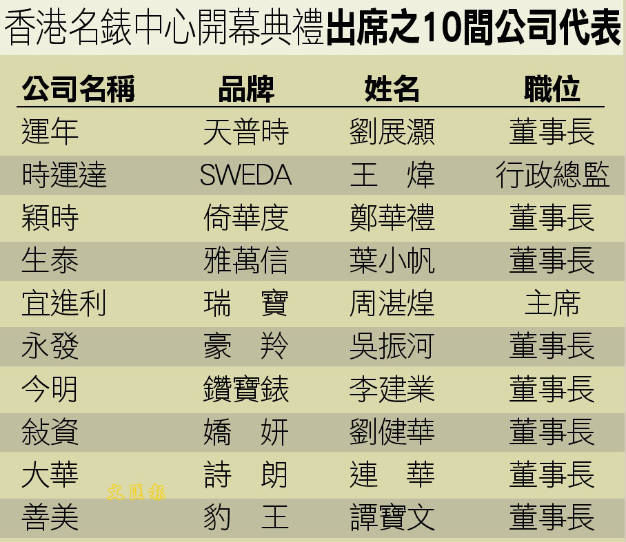 香港名錶中心開幕典禮出席之10間公司代表 (圖)