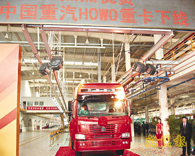 中國重汽在重汽濟南公司新總裝線下線。 (殷江宏 攝)