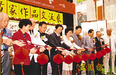 嘉賓為「內地書畫作品交流展」剪綵。