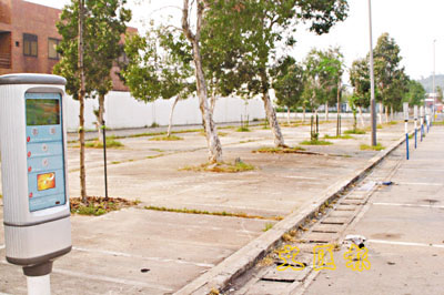 【本報訊】元朗福宏街一個僻靜露天停車場,昨發生罕見偷竊收費泊車咪表事件。2名懷疑在該處操練「飄移」駕駛術的男子,涉嫌撞斷2支「八達通」咪表柱後,把其中一支抬上貨車企圖運走,遭巡經警員撞破,當場被擒,疑犯事後辯稱對咪表結構感興趣,所以運走研究,警方不排除有人偷竊收費泊車咪表,另有不法企圖,於是將2疑人帶署。
