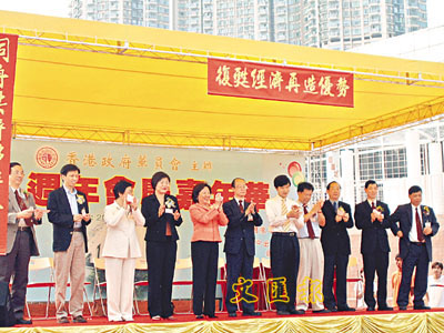 香港政府華員會昨日於九龍公園舉行90周年會慶嘉年華會,民政事務局常任秘書長李麗娟、康樂及文化事務署署長王倩儀及華員會會長黃河等嘉賓主持開幕儀式。大會亦預備了20多個攤位及表演活動,讓會員及市民歡度會慶。