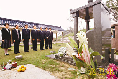 梁智鴻、何兆煒及高永文等人當日到浩園拜祭「沙士」殉職的醫管局員工。(資料圖片)