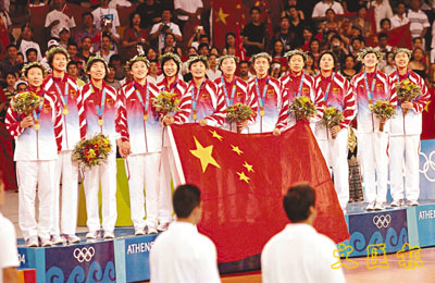 在奧運會頒獎典禮的台上高唱國歌,激勵了健兒前進的步伐。