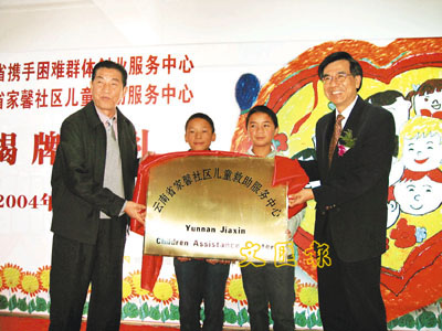 【本報駐雲南記者和向紅昆明9日電】世界宣明會與雲南昆明市合作開展的城市困境兒童救助項目、與雲南省合作開展的城市困難群體創業扶貧項目經過兩年多的試點運行,今年經過雲南省民政廳批准,註冊為非營利性的民間社區中介服務組織——雲南省家馨社區兒童救助服務中心、雲南省攜手困難群體創業服務中心,並於今天在昆明舉行揭牌儀式。