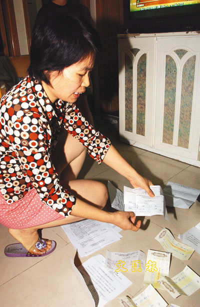小業主白太展示過去幾年的訴訟費及賠償費用收據。(蔣焯文 攝)