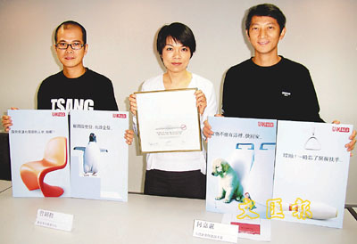 曾錦程、何嘉麗及陳大仁展示新推出的九巴廣告設計。 (甄健輝 攝)