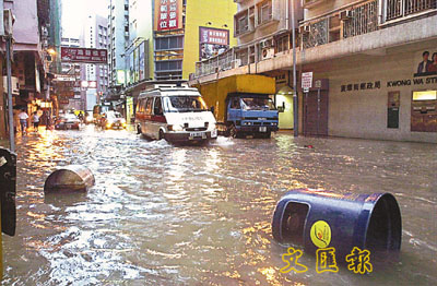 今年年中一場特大暴雨,令過去並非是水浸黑點的旺角及深水?變成澤國,其中彌敦道、登打士街、廣華街、豉油街、衛理道、窩打老道及太平道;深水?大埔道與南昌街交界,降雨量每小時超過100毫米,發生大小水浸數十宗以上,最嚴重的是彌敦道及廣華街一帶,大小街道變成急流,水深及膝,垃圾雜物隨水漂流。