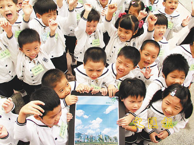 幼稚園學生寄望政府能還他們一個藍天,能深深呼吸一口無污染的清新空氣。(羅敬文 攝)