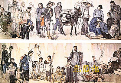 經歷了兩年晨風夕雨酷暑嚴冬,至一九四三年秋,高二米長二十六米的《流民圖》完稿,計有百餘個似真人大小的難民,個個栩栩如生,呼之欲出。