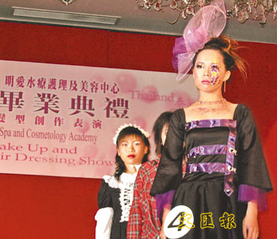 明愛美容專業中心的學生示範化妝及髮型創作。(沈清麗 攝)