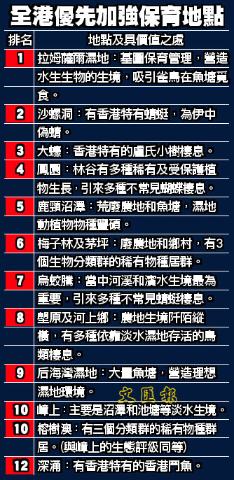 全港優先加強保育地點 (圖)