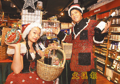 有食品公司就聖誕節推出一系列食品及禮物籃。(張立新 攝)