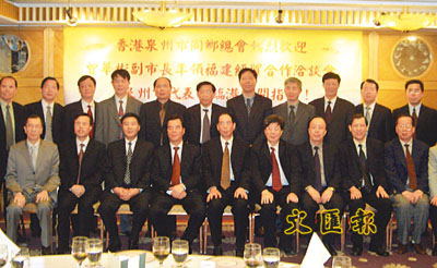 泉州市政府代表及香港泉州市同鄉會領導包括曾華彬、吳共湖、 林樹哲、陳榮助等合影。(趙威 攝)