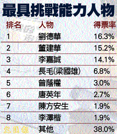 64.8%受訪者認為內地同齡青年是自己面對的重要挑戰,在各項中排名第2,比率更高於希望進入第1志願的學校進修。李慶偉表示,內地及香港經濟及各方面的距離日漸拉近,政府及各界都積極宣傳有關訊息,已為年輕人接受,而越來越多年輕人參加與內地的交流活動,加上有不少意見指香港多方面都被內地的大城市比下去,確立了有關的認知。