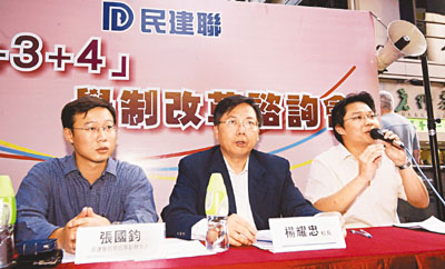民建聯教育政策副發言人張國鈞及教育工作者聯會會長楊耀忠重申,民建聯一直倡議中學6年、大學4年的學制,並相信新學制將更有利香港與國際教育主流接軌。不過,該黨希望,政府在爭議性較大的議題,如學費的增幅上,可以多聽取家長的意見。